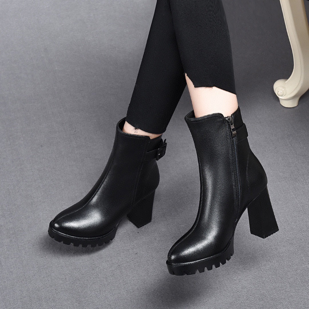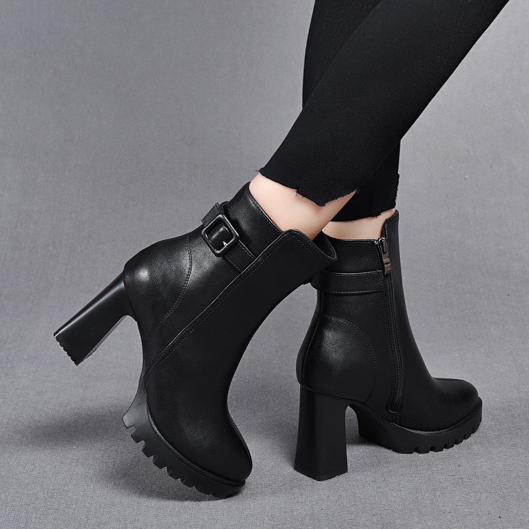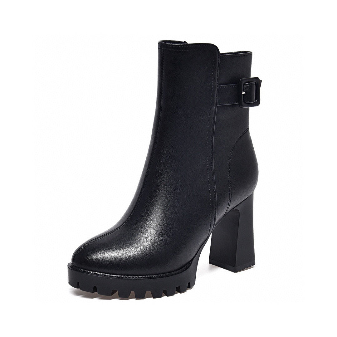 Women's Stylish Platform High Heel Leather Boots With Belt Buckle